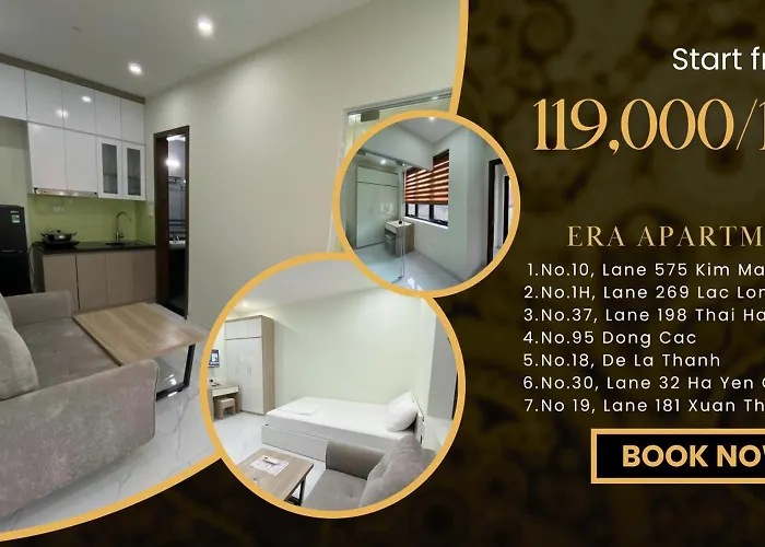 3つ星Era Apartment Xuan Thuy ハノイ市ホテルはミーディン国立競技場などのスポーツ施設から2.5kmに位置し、都市の景色を望む12室の客室を提供しています。 駐車場もあります。